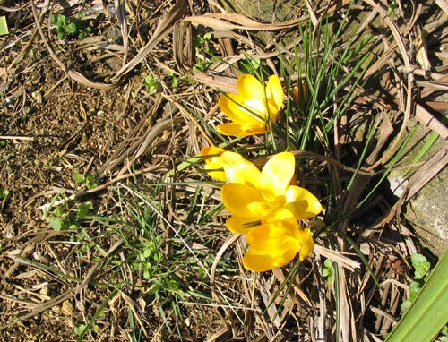 植えたつもりのないところに咲く花は清々しくも健気だ。ならば、野に咲く花はすべてそうなのだろうが、庭という擬似自然では殊更強調される感覚かもしれない。強烈なカドミウム・イエローは功利と経済原則に支配された園芸品種なのだろうが、その可憐さは背後の闇が暗ければ暗いほど美しく灯るようだ。