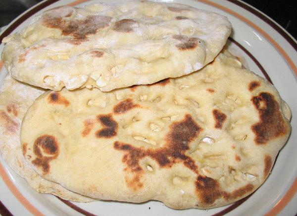 タンドゥーリ・ナンといわれるように、本来は全粒粉とベーキングパウダーを練ってタンドゥールと呼ばれる石釜で蒸し焼きしたもの。北インド、パンジャブ地方特有の食べ物らしい。もちろんタンドゥールなんぞあるわけないので以下は真似事。