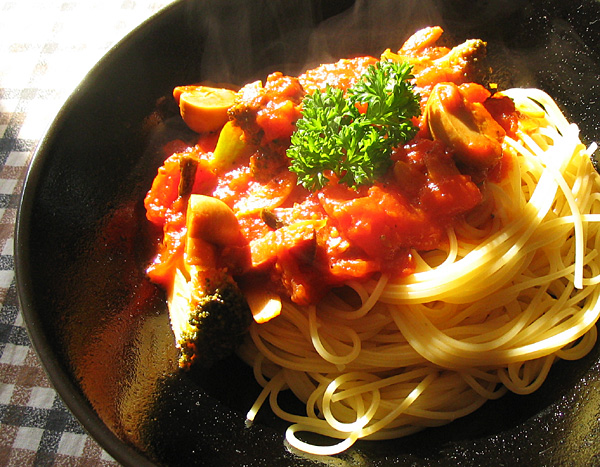 1kgで178円と今の円高時勢では安いのかボッタクラれてるのか判断に苦しむ地中海南岸チェニジア産の1.55mm。こちらは外食で客に出すには十分な、目からウロコ、なかなかのレベル。小麦は香らないが、食感はタイミングさえ外さなければDivella並というかシコシコ。大蒜・唐辛子のトマトソースにマシュルーム、ブロッコリ、セロリとコッパで旨味付け。