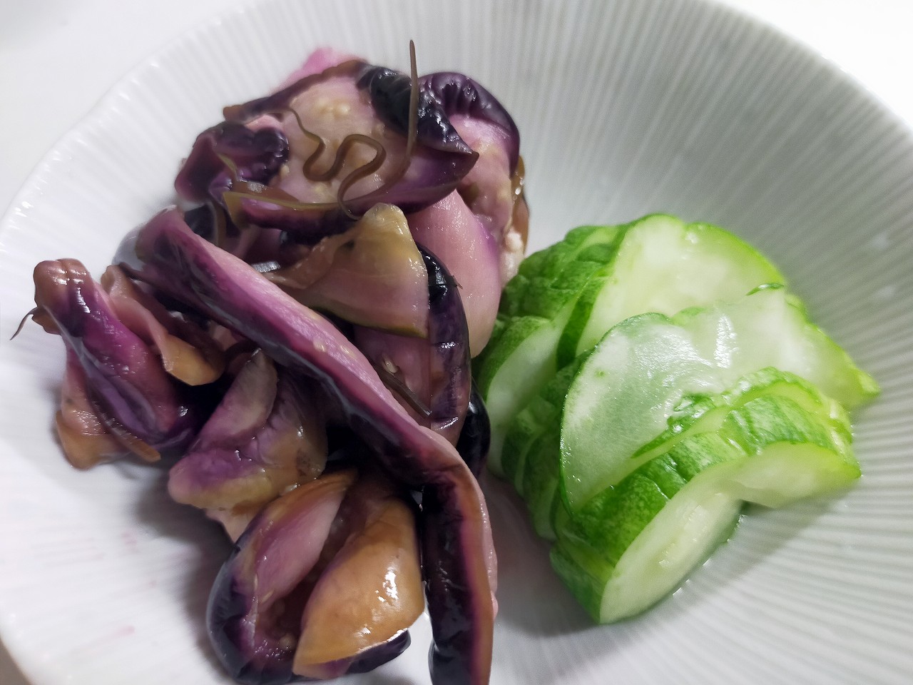 ハグラ瓜という直径10cm、長さ20cmほどの瓜を買い求める。ウチのあたりでは夏場だいたい100円台。2つに割って塩を載せて密封し冷蔵庫で一晩。出た水分は捨て、キッチンペーパーで瓜の表面の水分をきっちり拭う。米酢、梅酢、味醂、砂糖、柑橘、赤唐辛子等好みで調合した液に漬け冷蔵庫で数日。次の日には食える。余っていた茄子は昆布と一緒に漬けた。